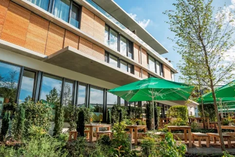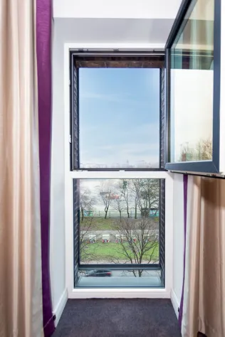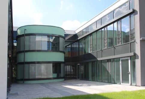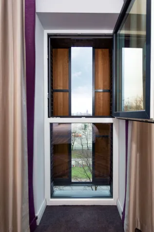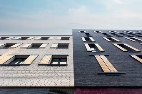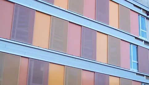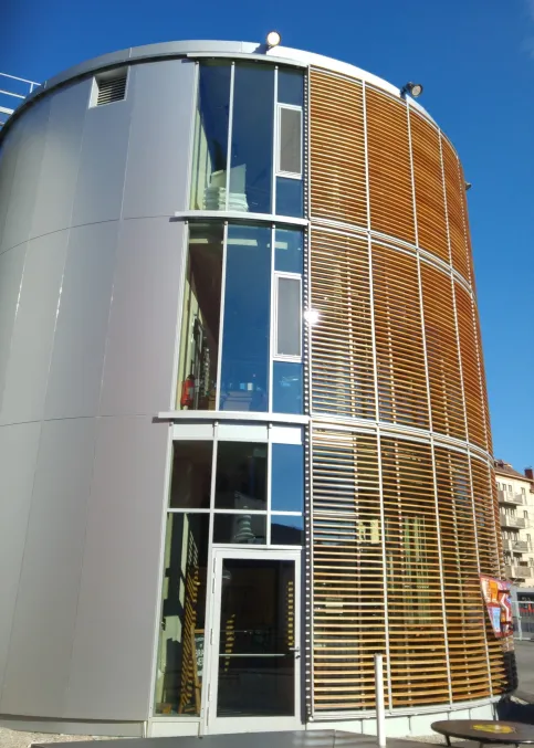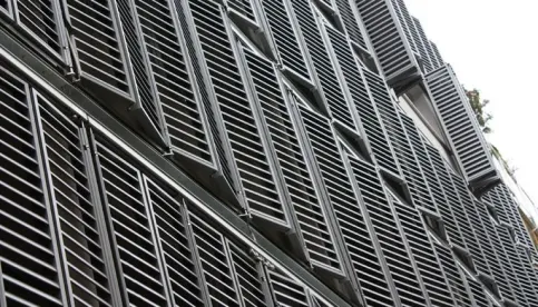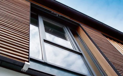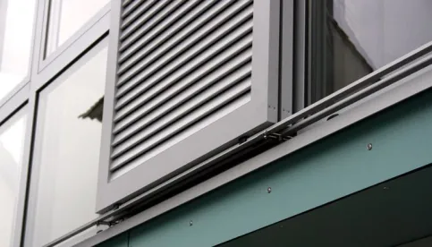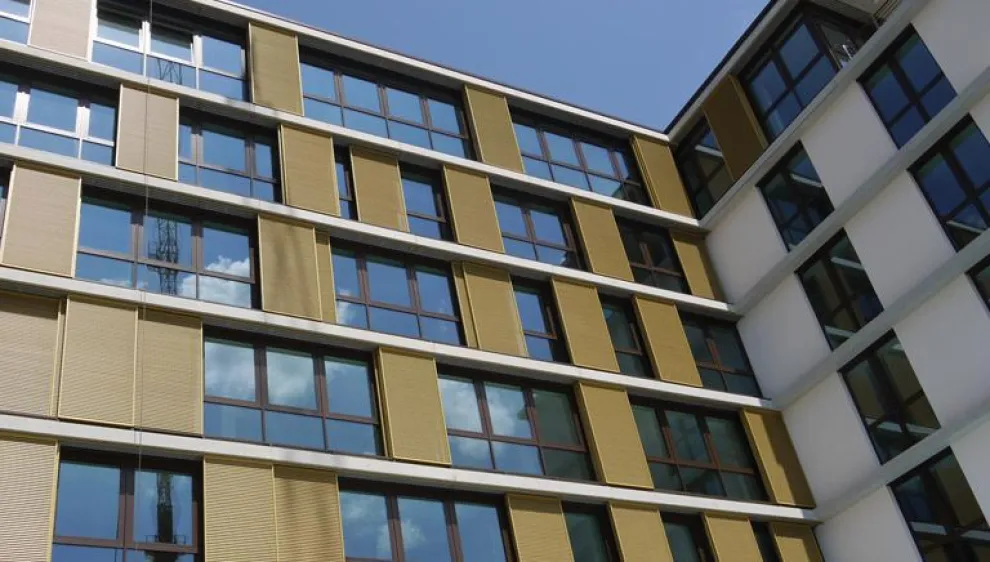 Schiebeläden bieten zeitloses Design und eine Beschattungstechnik, die auch der Witterung und windigen Sonnentagen trotzt – zwei wichtige Argumente im Einsatz zum Beispiel an Kliniken, Gewerbebauten, öffentlichen Gebäuden und Sportzentren.