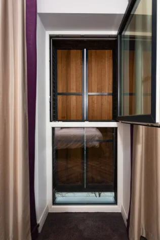 Das Hotel sollte sich außen wie innen in die kulturelle Vielfalt dieses besonderen Hamburger Stadtteils einfügen und sich am St. Pauli Code orientieren. Dieser fordert eine heterogene und kleinteilige Architektur. Maßgebliches und abwechslungsreiches Element stellen hierbei die hölzernen Schiebeläden dar, durch die das massive Gebäude, seine kleinteilige und interessante Struktur erhält. Das Gebäude wurde an den straßenseitigen Fassaden mit 121 Schiebeladenanlagen ausgestattet. 16 der Schiebeläden sind als Sicht- und Sonnenschutz verschiebbar, die restlichen 105 feststehenden Anlagen dienen der Gestaltung der Fassade. Ein innenliegender Sonnenschutz in den Hotelzimmern sorgt für die Verdunkelung der Räume.