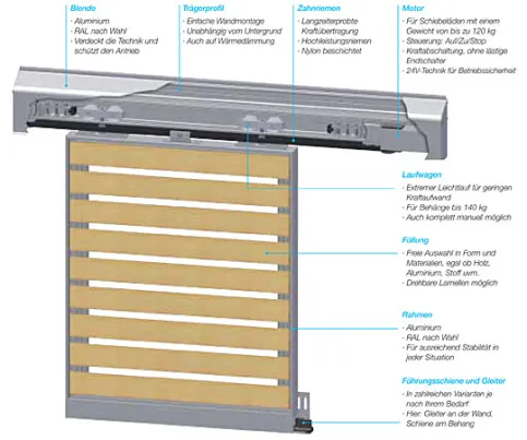 Baier liefert Schiebeläden vom günstigen, standardisierten Behang über das exklusive Schiebeladen-Modell bis hin zur individuellen Sonderanfertigung.