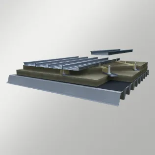 Mit dem sehr kompakten Dachaufbau BEMO-COMPACT lassen sich höchste Anforderungen im Bereich des Schallschutzes und ganzjährigen Wärmeschutzes erfüllen. Durch die zweilagige Verlegung der nicht brennbaren, trittfesten Wärmedämmung besteht die Möglichkeit eine Höhe von bis zu 360 mm zu realisieren.