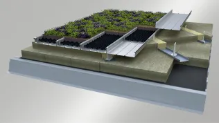 Stehfalz-Systeme eignen sich als sicheres Grundsystem für moderne, ökologische Dachbegrünungen. Diese wirken der Flächenversiegelung entgegen. Die Dachbegrünung ist nicht nur sommerlicher Wärmeschutz, sondern trägt zur Luftreinhaltung, speziell im städtischen Raum, bei.