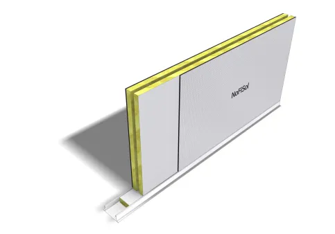 Für maximale Flexibilität gibt es somit drei verschiedene Arten der Montage. Nofisol kann zeitsparend als reines Akustikschott mit extra Schritt als Rauchschott oder mit weiteren extra Schritten als Brandabschottung eingebaut werden.