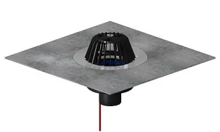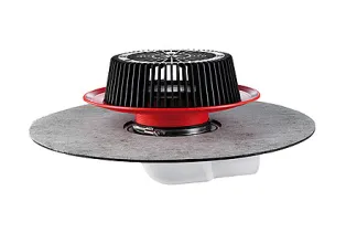 Die Brandschutz-Dachabläufe können mit den gängigen Dachabdichtungen eingesetzt werden. Sie sind speziell vorbereitet für den Anschluss von Dachbahnen aus Bitumen, PVC und FPO. Der Dallmer Brandschutz für die Flachdach-Entwässerung besteht aus einem speziellen Brandschutz-Rohbauelement (1 oder 5), in das ein Standard-Dachablauf 62 mit Laubfang aus Edelstahl eingesetzt wird.