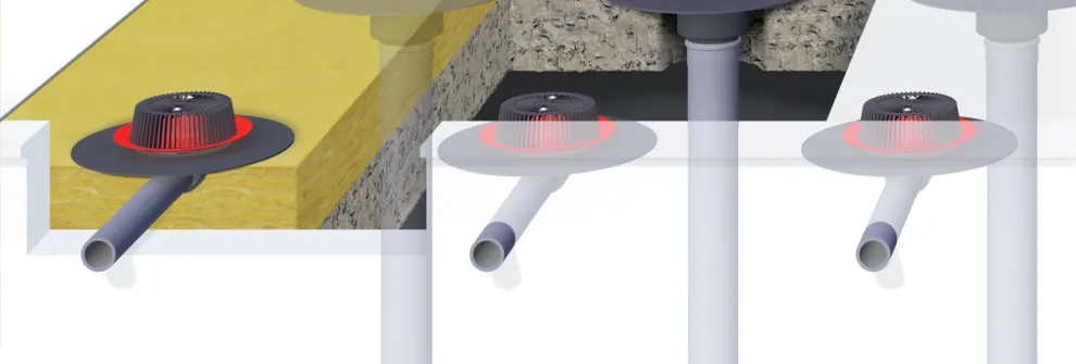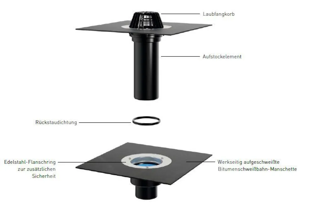 Zur Sicherstellung der Notentwässerung können alle Dachabläufe mit einem Anstauring als Notabläufe ausgestattet werden.