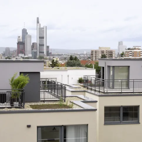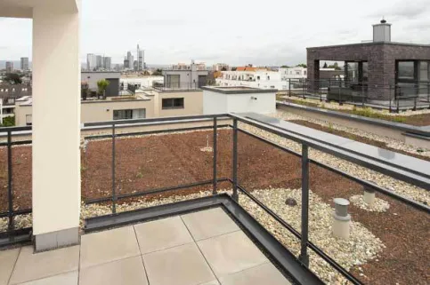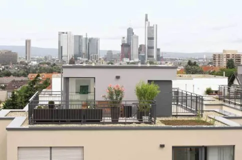 Am Objekt „Goetheblick Special“ der Nassauischen Heimstätte Wohnungs- und Entwicklungsgesellschaft mbH wurden in Frankfurt-Sachsenhausen exklusive Stadtvillen mit Freiterrassen dieser Art geschaffen. „Wir haben uns für das freitragende Geländersystem Panorama von dani alu entschieden, da wir eine Durchdringung der Abdichtung und die damit verbundenen Nachteile unbedingt vermeiden wollten.“, so Thomas Jeckel, Leiter Neubau technischer Service. „Die Dachgeschoss-Wohnungen sollten einen freien Blick über die Skyline der Mainmetropole bieten – deshalb die Ausführung der Geländer mit Glas- oder Stabfüllung. Die geprüften Geländermodule wurden nach Maß geliefert mit Verlegeplan, Stückliste und Montageanleitung – das erleichtert natürlich vieles!“