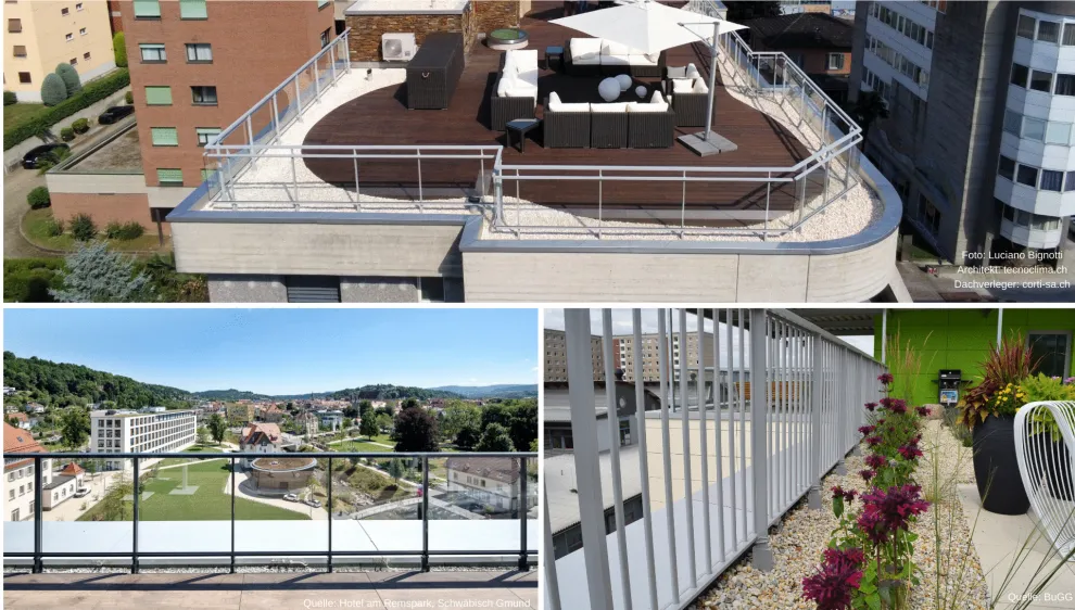 Zusätzliche Wohlfühlräume sind ein Kernthema, sowohl im Neubau als auch Sanierung. Das Flachdach als Hülle eines Gebäudes ist prädestiniert für die Aktivierung als zusätzliche Fläche. Für die Nutzung der Dachflächen steht die Sicherheit - für den Menschen und das Dach - sowie die Ästhetik im Vordergrund. Um Sicherheit zu gewährleisten sind die Produkte der Serie Panorama® durch eine Typenstatik belegt. Das modulare Geländersystem bietet vielfältige technische Lösungen und eine Vielzahl an Gestaltungsmöglichkeiten. Damit lässt es sich sehr gut in die Architektur des Gebäudes integrieren.