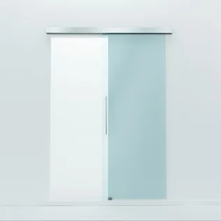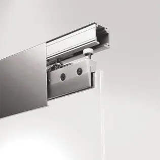 Der Glasbeschlag für Pendeltüren RP arbeitet mit einem Rahmentürschließer dormakaba RTS, der verdeckt in einem durchgehenden Rahmenprofil liegt. Die Anbindung des Türflügels erfolgt über einen oberen und einen unteren Eckbeschlag. Für die Verbindung nach unten reicht ein Aufschraub-Bodenlager. Der Fußboden bleibt also nahezu intakt. Ein Vorteil gerade bei besonders wertvollen Bodenausstattungen oder Fußbodenheizungen. Die Laufwagen des Schiebetürbeschlags RS 120 führen die Flügel geräuscharm durch leichte und zugleich stabile Laufschienen. Eine spezielle Seilzugtechnik ermöglicht eine synchrone Öffnung von gegenläufigen Doppelflügeltüren. Das bedeutet größtmöglichen Bedienungskomfort für maximale Durchgangsbreiten.