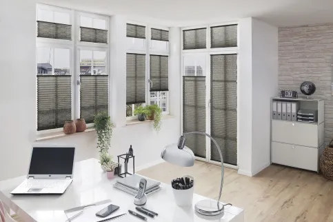 Plissees bieten eine bedienfreundliche Kombination aus Funktion und Dekoration, auch bei Sonderformen. Mit einer vielseitigen Stoffauswahl in unterschiedlichen Transparenzen und Farben sind Plissees sowohl als Sicht- und Sonnenschutz als auch zur Abdunklung einsetzbar.