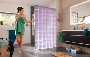 Das Sortiment bietet auch kleinere Glasbausteine: 11,5 x 11,5 x 8 cm oder 19 x 9 x 8 cm für mehr Flexibilität in der Größengestaltung der Glasbausteinwand.