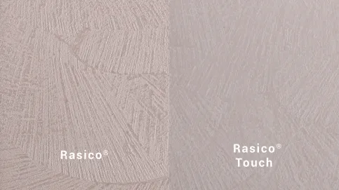 Neben der klassischen Ausführung ermöglicht Rasico® eine weitere Art der Verarbeitung: Rasico® Touch. Die flammenähnliche Effekt basiert auf einer dezenteren Struktur, die mit einer weiteren Materialschicht realisiert werden. Die haptische Oberfläche ist ideal für öffentliche Räume, wo eine starke, rutschfeste und strapazierfähige Oberfläche gewünscht wird.