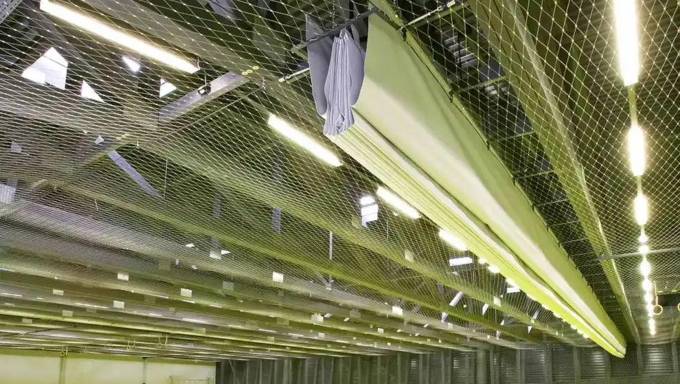 In Mehrzweckhallen erzgeut das Nebeneinander von Sportveranstaltungen und Bühnentechik häufig Probleme. Mit Webnet können Schutznetze maßgeschneidert werden, um die Hallentechnik und Beleuchtung wirksam vor Balleinschlägen schützen. Dies spart Mehrkosten für teure erschütterungssichere Hallentechnik ein. Dank des minimalistischen, zeitlosen Edelstahllooks kann das Netz auch gut in die Innenarchitektur integriert werden.