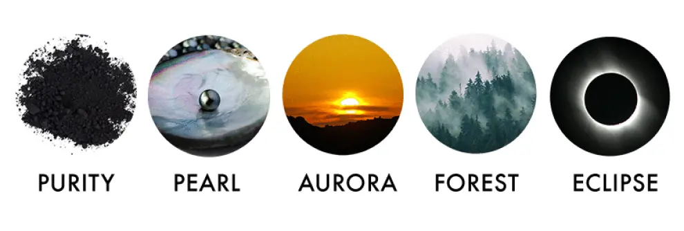 Intensives Schwarz in fünf verschiedenen Schwarznuancen