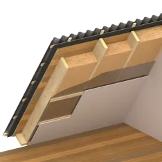 DAA Außendämmung von Dach oder Decke, vor Bewitterung geschützt, Dämmung unter Abdichtungen von z. B. Gefälledächern und Flachdächern.
