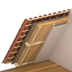 Die Therma TP11 Steildachplatte aus Polyurethan (PIR) dämmt wärmebrückenreduziert, erspart einen kompletten Arbeitsgang aufgrund der bereits aufkaschierten Unterspannbahn und bietet eine leichtgewichtige Lösung für die Aufsparrendämmung von Steildächern an.