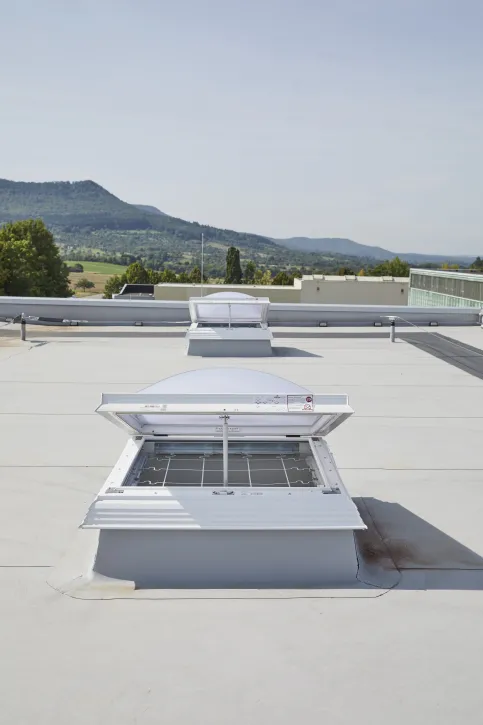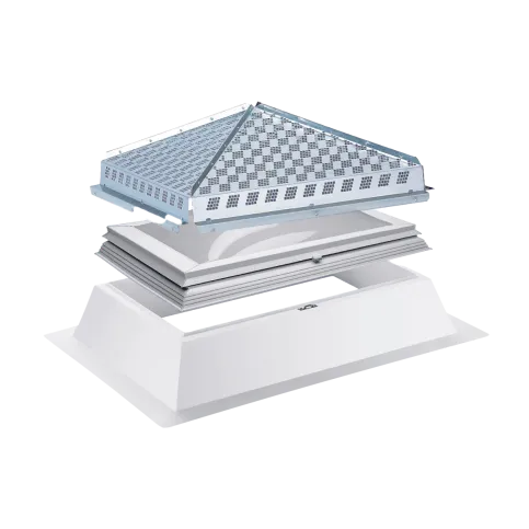 Die Kingspan ESSMANN Lichtkuppel LK classic ist in unterschiedlichen Verglasungsvarianten erhältlich und durch eine Vielzahl von Komponenten wie z. B. Rauch- und Wärmeabzugsgeräten (RWA), Lüftungsaggregate oder Durchsturzsicherungen funktional erweiterbar.