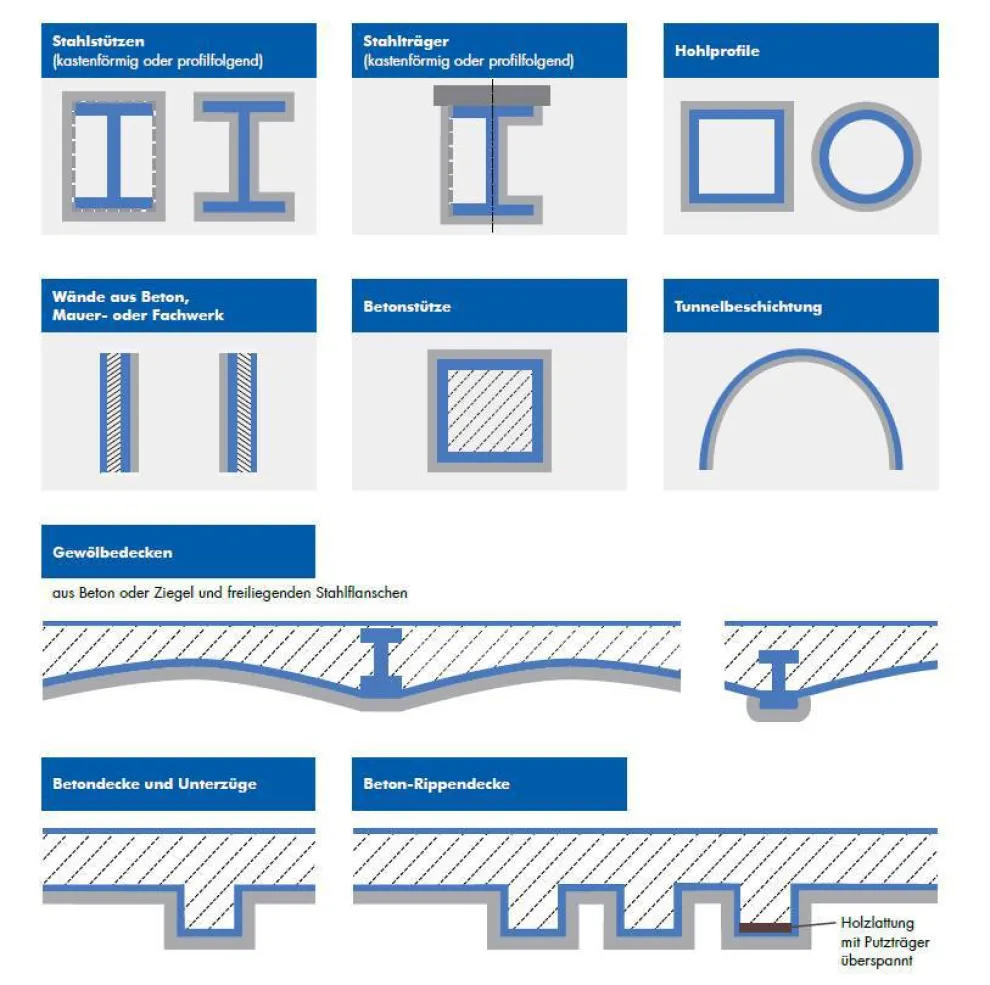 Voraussetzung für die brandschutztechnische Wirksamkeit ist eine ausreichende Haftung am Putzgrund gemäß DIN 18550 bzw. DIN 4102-4.