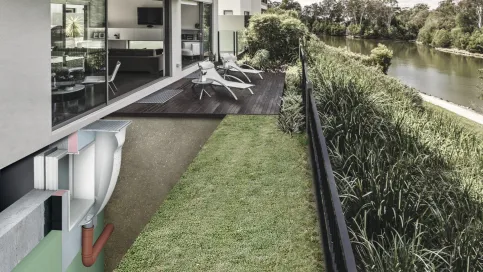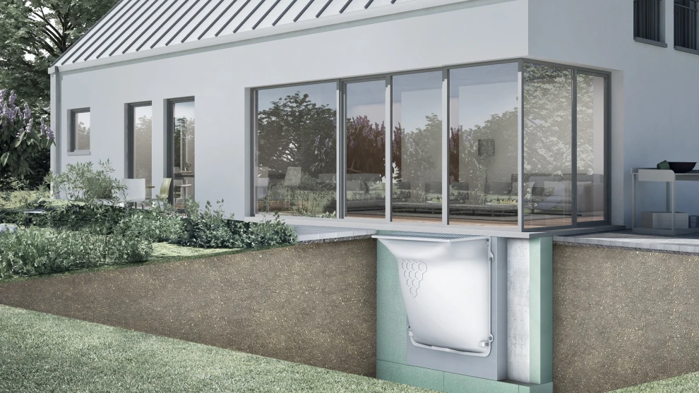 oder auf Perimeterdämmung druckwasserdicht und wärmebrückenfrei montierbar.