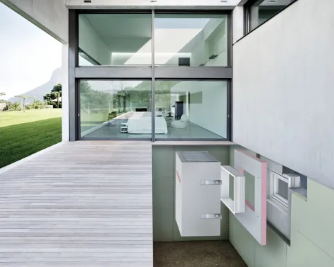 Dank eines durchdachten Systems ist mit MEAVECTOR eine thermisch getrennte Lichtschacht-Anbringung möglich. Das geschieht mittels einem Schnellmontageset und der vorkonfektionierten Montagedämmplatte MEAFIX ISO, auf welcher der Betonlichtschacht montiert wird.
