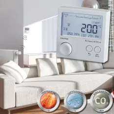 Das Raumtemperatur-Regelsystem „R-Tronic“ schafft eine energiesparende Lösung, die nicht nur einen Wohlfühlbereich hinsichtlich einer gewünschten Raumtemperatur ermöglicht. Der Nutzer wird auch angeleitet, das Raumklima in seinem Wohnumfeld durch natürliche Fensterlüftung bei gleichzeitiger Vermeidung unnötiger Energieverbräuche zu verbessern. Dabei werden die Raumluftkennwerte permanent von einem integrierten CO2- und Feuchtesensor erfasst und mit voreingestellten Werten verglichen.