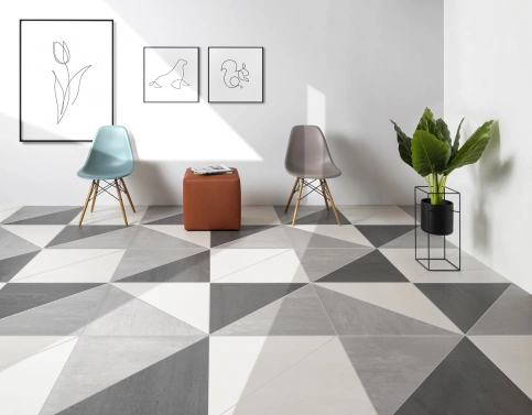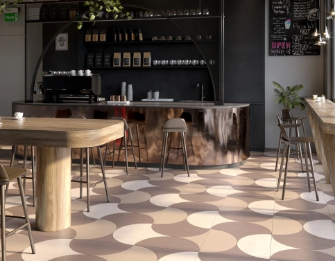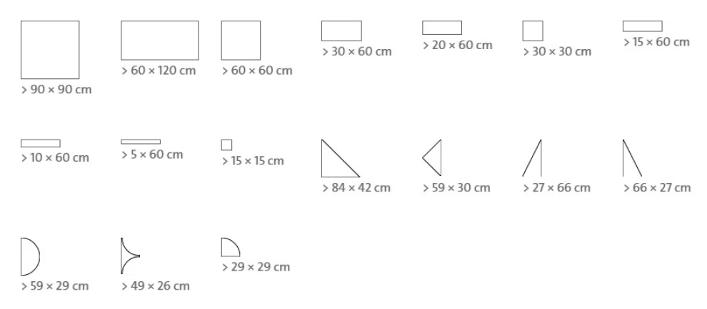Alle Elemente sind modular, sodass Fliesen kombiniert werden können, um für den gewünschten Effekt zu sorgen und die gewünschte Atmosphäre für individuelle Designs und Zwecke zu erzeugen. Die innovativen Formen umfassen Kreise, Dreiecke und Verbindungsstücke. Mit diesen Formen ist alles möglich: von robusten Oberflächen aus dynamischen dreieckigen Fliesen bis hin zu ruhigen und stabilen Flächen aus quadratischen Fliesen, und von der Orientierungshilfe, für die rechteckige Formen sorgen können, bis hin zum weichen, spielerischen und organischen Gefühl, das Kreise hervorrufen.