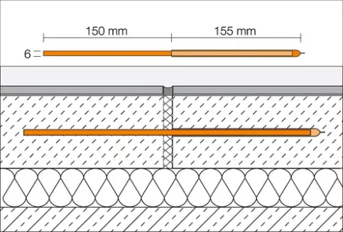 Zur Vermeidung unkontrollierter Rissbildungen werden Mörtelbett und Belag durch Einbau von Schlüter®-DILEX-EZ 70 in die zulässigen Feldgrößen unterteilt. Das Weich-PVC-Mittelteil nimmt Druckspannungen infolge von Dehnung des Mörtelbettes auf.