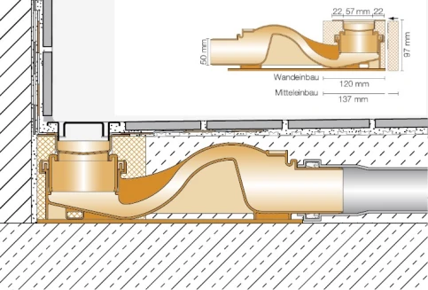 Die Ablaufprofile sind auf der Baustelle individuell kürzbar und lassen sich so exakt an die bauseitigen Bedingungen anpassen. Der drehbare Anschlussstutzen der Entwässerungseinheit ermöglicht höchste Variabilität in der Installation.