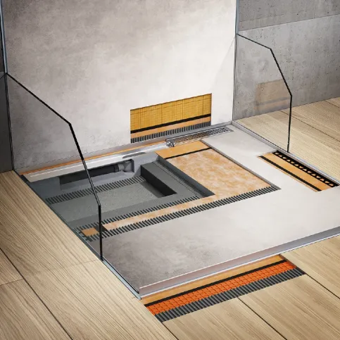 Schlüter®-KERDI-SHOWER ist ein modulares System zum Bau von bodenebenen Duschen mit keramischen Fliesen. Im System dicht: die Kombination aus Schlüter-KERDI-Abdichtung und Gefälleboard. Für eine sichere Funktion und schnelle Verarbeitung sind die systemkonformen Gefälleboards auf der Oberseite bereits mit einer KERDI-Abdichtung beschichtet.
