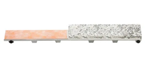 ist ein rahmenloser Belagträger für lineare, barrierefreie Duschen. Ohne Rahmen nimmt der Belagträger den Bodenbelag dezent auf. Das Wasser fließt durch die offene Fuge rund um den Belagträger in die Ablaufinne.