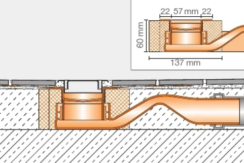 Durch die hohe Fließgeschwindigkeit im Ablaufgehäuse entsteht ein selbstreinigender Effekt. In Verbindung mit den Schlüter-KERDI-LINE-VARIO Entwässerungsprofilen können somit sehr flexibel dezente Ablaufrinnen erstellt werden.