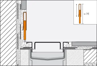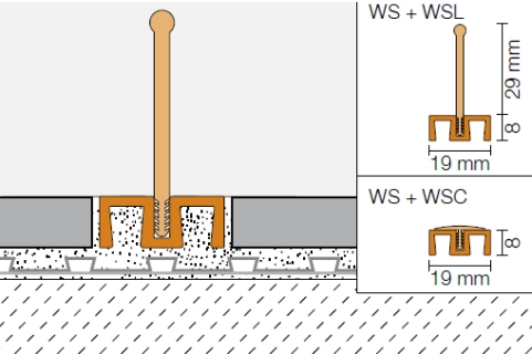 Schlüter®-SHOWERPROFILE-WS wird als Trägerprofil im Belag mit Dünnbettmörtel verankert. Es besitzt eine 19 mm breite Sichtfläche und hat eine Höhe von 8 mm. Somit können Fliesen ab einer Dicke von 8 mm mit dem Profil kombiniert werden.
