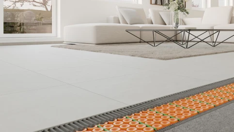 Wahlweise als DITRA-HEAT-DUO-PS mit zusätzlicher Trittschalldämmung und schnellerem Aufheizverhalten erhältlich.
