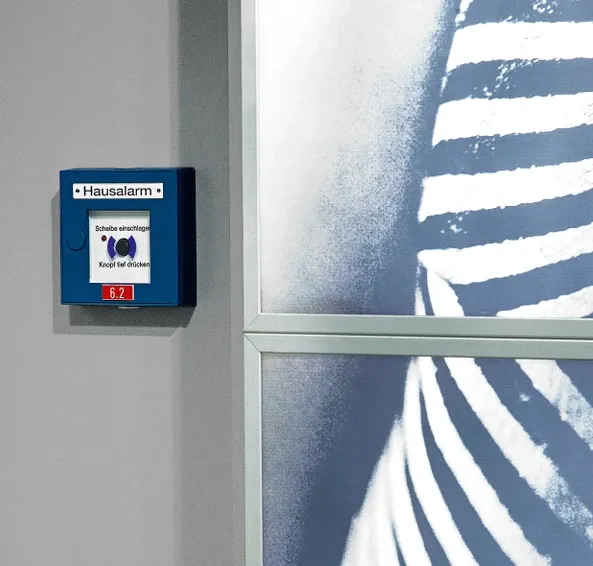 Handfeuermelder können im Gebäude verteilt installiert werden. Bei Auslösung ertönt ein akustischer Alarm und ein Signal wird an die Brandmelderzentrale gesendet.