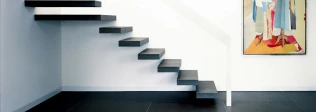 Die sogenannten freiauskragenden Treppentypen reduzieren die konstruktiven Elemente zusammengefasst zu klassischen Designprodukten. Durch das umfassende Leistungsprogramm kann der Kunde den passenden Bodenbelag zu seiner Treppe wählen und diesen auf Wunsch, mit hochwertigen Einlegearbeiten veredeln lassen.