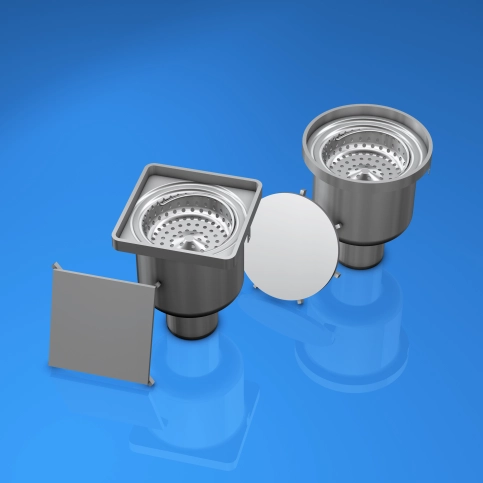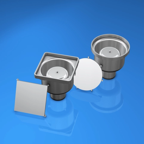 Alle Bodeneinläufe werden im Tiefziehverfahren, nahezu ohne Schweißnaht, hergestellt, wodurch eine einwandfreie Oberfläche entsteht. Passend fertigt Wiedemann die entsprechenden Abdeckungsvarianten sowie Zusatzausstattungen, wie Flanschausführungen, Geruchsverschlüsse und Schlammfänge.