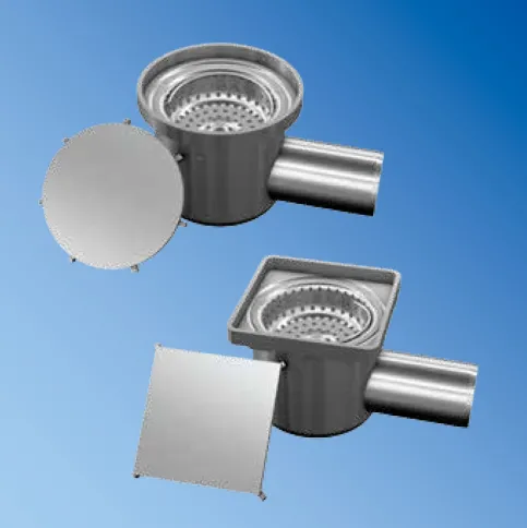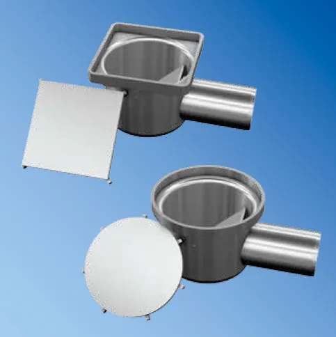 Schlammfang- Geruchsverschluss:: | • kombinierter Schlammfang mit Geruchsverschluss, steckbar • Geruchsverschluss, verschraubt – Schlammfang entnehmbar • eingeschweißtes Standrohr über eine Spindel absperrbar, Schlammfang und Geruchsverschluss getrennt |