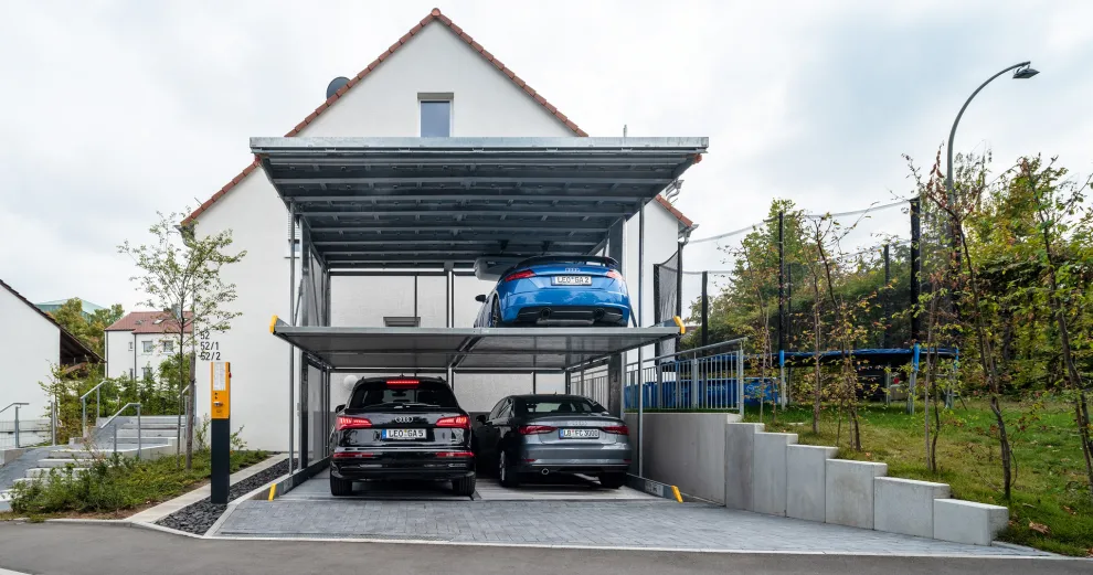 Deckelplattform kann mit einem Carport ausgestattet werden, um zusätzlich zwei überdachte Stellplätze zu gewinnen