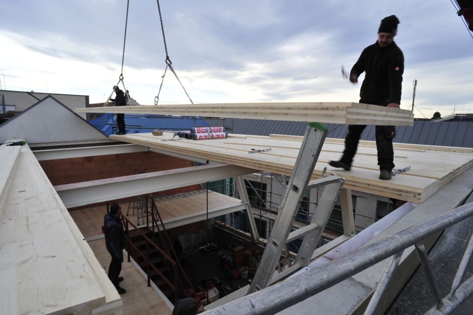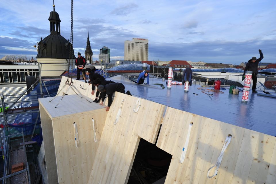 Dachaufbaus. Dabei wurde der Dachstuhl in seinen historischen