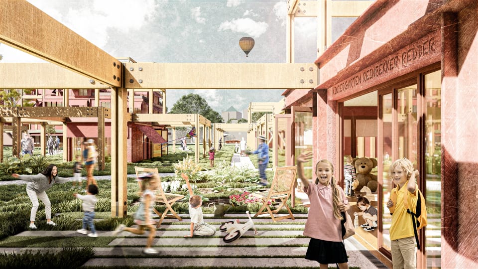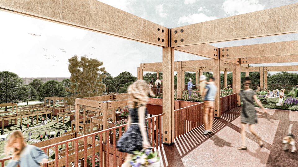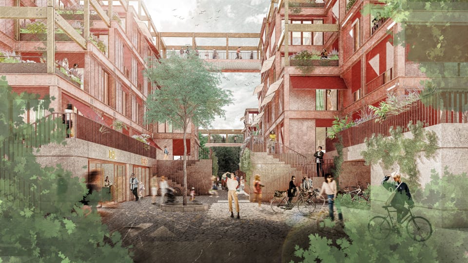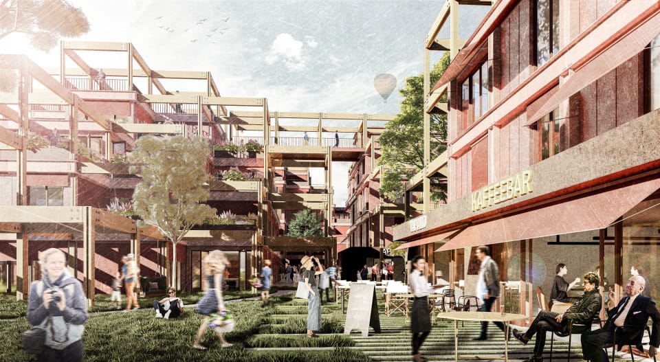 In Hamburg-Lohbrügge soll, in unmittelbarer Nähe zur Staatsgrenze zu Schleswig-Holstein, ein neues Quartier errichtet werden, das der weiterhin hohen Nachfrage durch bezahlbaren Geschosswohnungsbau Rechnung trägt. Essentieller Bestandteil unseres Entwurfes ist die Bewahrung des vorhandenen Grünzuges, der das Baufeld durchzieht. Dieser ist notwendig, um das vorhandene „Grüne Zentrum“ von Lohbrügge mit dem nördlichen Landschaftraum zu verbinden, damit die vorgesehenen ökologischen Effekte der Grünplanung wirksam bleiben. Unser Konzept sieht es vor, im östlichen teil des Grundstückes eine hohe urbane Dichte in den westlichen Bereich und somit in den Grünzug "ausfaden" zu lassen. In einer Gegenbewegung faded der Grünraum von einer hohen Dichte im Westen zu einer geringeren Dichte in den urbanen Raum aus. Diese Wechselbewegung schafft eine Verzahnung zwischen Gebäude und Grünzug und kreirt somit ein spannendes Zusammenspiel. Der vorhandene Grünzug wird erhalten und durch eine hölzernde Pergolastruktur, die das Grün an die Gebäude heranführt, unterstützt. Die Pergolastruktur verbindet nicht nur den Grünraum mit den Gebäuden, sondern bietet auch unterschiedliche Nutzungen für die Bewohner. Neben der Erschließung sind in der Pergola attraktive Gartenflächen, Möglichkeiten zu Urban Gardening sowie großzügige Terrassen bzw. Balkone angeordnet. Die Gebäude haben eine tragende Struktur aus recyceltem Stahl, welcher in der Fassade klar strukturiert ist. Die modulen Fassadenelemente zwischen der prägnanten Stahlstruktur sind aus hinterlüfteten Aluminiumprofilen mit Wärmedämmung. Die Verbindung mit der hölzernden Pergola schafft ein spannendes Zusammenspiel zweier Materialien, sowie den klar definierten Übergang zwischen Innen und Außenraum. Die Grundrisse sind modular und weisen unterschiedliche Größen auf. Sie haben die üblichen Größen und varrieren auf Grundlage der marktüblichen Kennwerte zwischen 30m² und 75m². Der Entwurf ist aufgrund ökologischer, ökonomischer und baukonstruktiver Aspekte besonders nachhaltig.