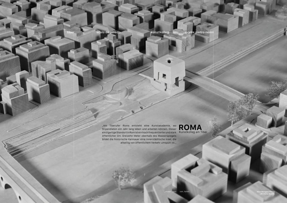 Entlang des Tiberufers, unweit des historisch römischen Stadtkerns – sucht das Projekt eine Antwort auf die bauliche Erweiterung der deutschen Akademie Villa Massimo.