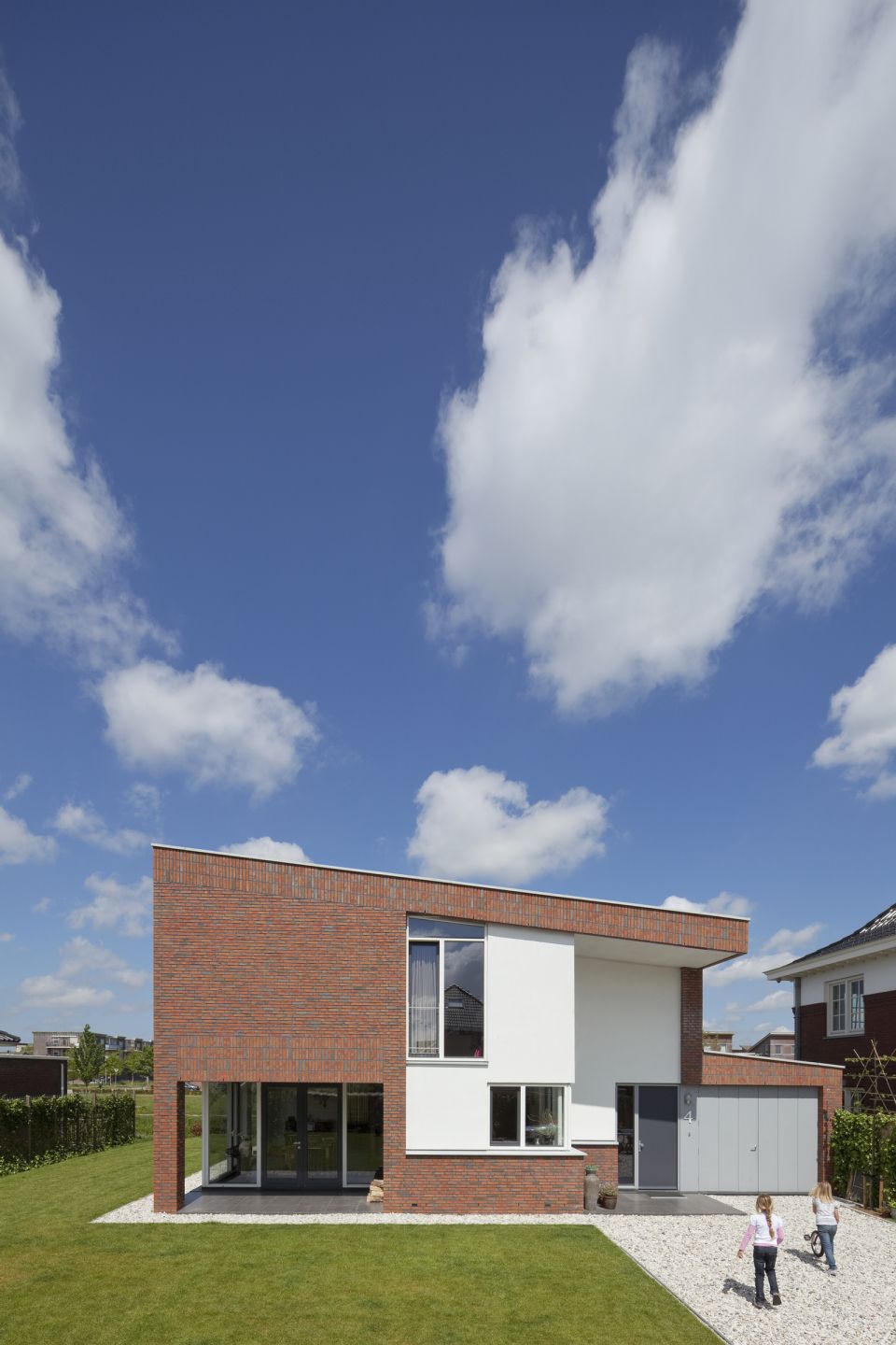 Das Haus ist für eine Familie mit drei Kindern ausgelegt und wurde auf einem kleinen Grundstück errichtet, das an drei Seiten an Nachbargrundstücke angrenzt. An der vierten Seite, Richtung Abendsonne, kann der Blick weiträumig schweifen. Aufgrund der engen Lage und den Nutzungsanforderungen einer sich entwickelnden Familie, wurde ein Haus mit einer großen Auswahl an Innenräumen konzipiert.